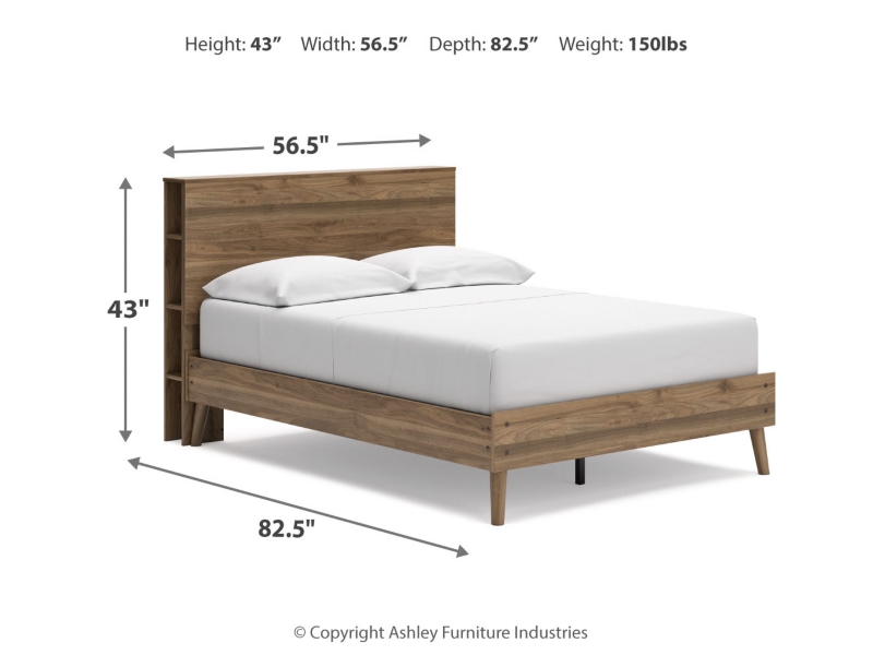 Dare to take minimalism to the max. This full bookcase headboard has a richly relaxed feel thanks to its honey brown finish over replicated wood grain. A space-efficient storage option, cubbies along the side of the headboard ensure you can keep your favorite reads within reach. USB charging keeps up with your high-tech lifestyle. There's no doubt about it: This contemporary piece is sure to become a classic.