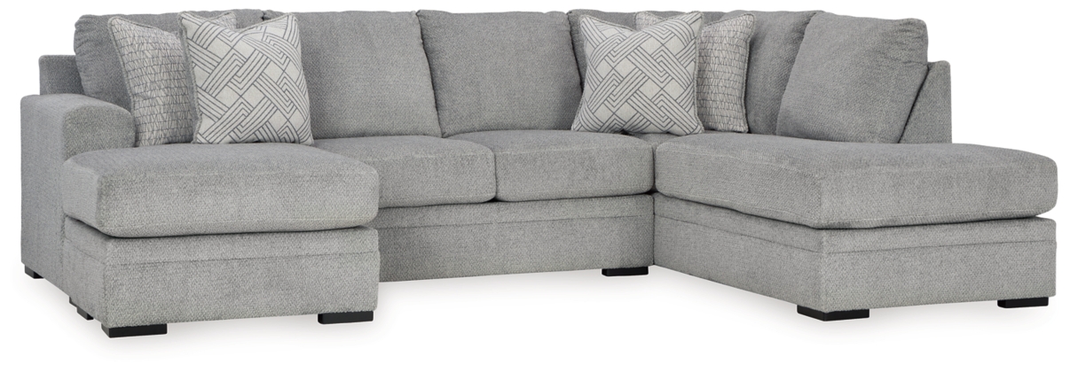 Don’t be limited by a lack of space. This sectional makes family movie nights and get-togethers with friends all the more cozy. With its double-chaise configuration, everyone has a spot to lounge. A trendy gray hue offers the contemporary style you crave. So sit back and relax—this functional piece is ready to indulge you with everyday comfort.