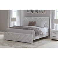 Charmingly designed, this queen panel bed embraces the aesthetics of countryside living and repurposes them for modern settings. Its whitewash paint, replicating the wear and tear of time, appeals to your love of vintage character. And a chic chevron pattern on the headboard and footboard keeps your bedroom effortlessly on trend.