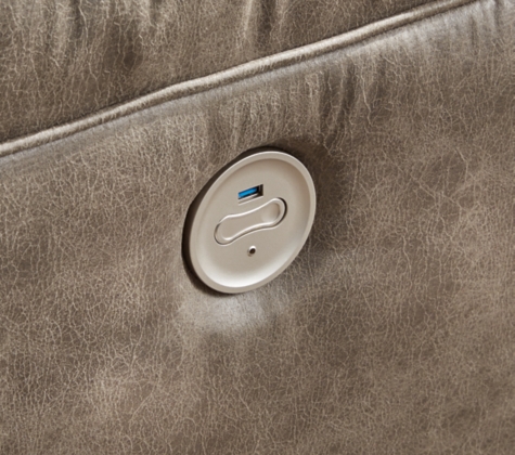 This power reclining sectional is designed exclusively for those who are serious about R&R. Its overstuffed cushions and pillow top arms feel oh-so-plush, and the faux leather upholstery accented with jumbo stitching is silky soft. Go from upright to reclined relaxation with just one touch. A clever center console provides storage and keeps drinks at the ready.