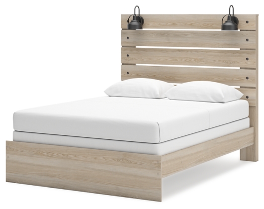 When merged in just the right way, rustic and industrial styles can make one happy marriage. Case in point: this queen panel bed. It offers a refined take on barn board beauty, with subtle replicated wood grain showcasing a natural finish for a sense of authenticity. Love to read in bed? You’re sure to find that the headboard's retro-chic light sconces and integrated USB charging are such bright ideas.